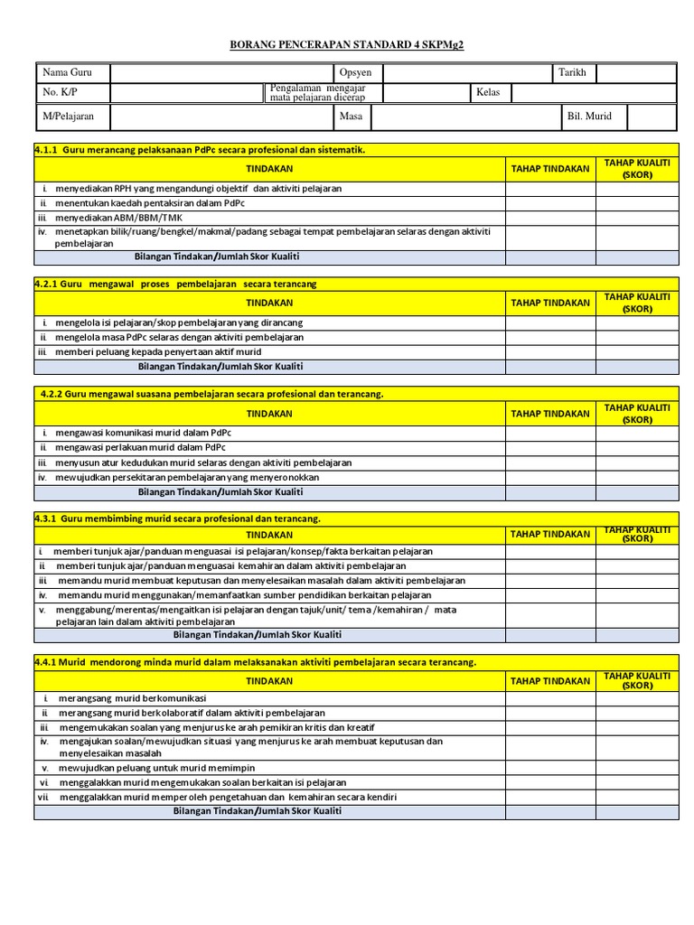 Muat Turun Borang Penskoran Standard 4 Skpmg2 Pembelajaran Dan Pemudahcaraan Pdpc